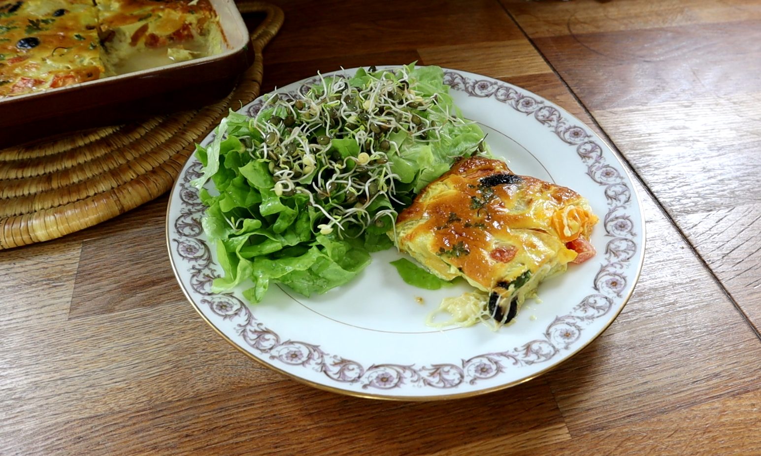 - Mettez le plat à gratin dans un autre plat plus grand et remplissez avec un peu d'eau pour réaliser une cuisson au bain-marie,