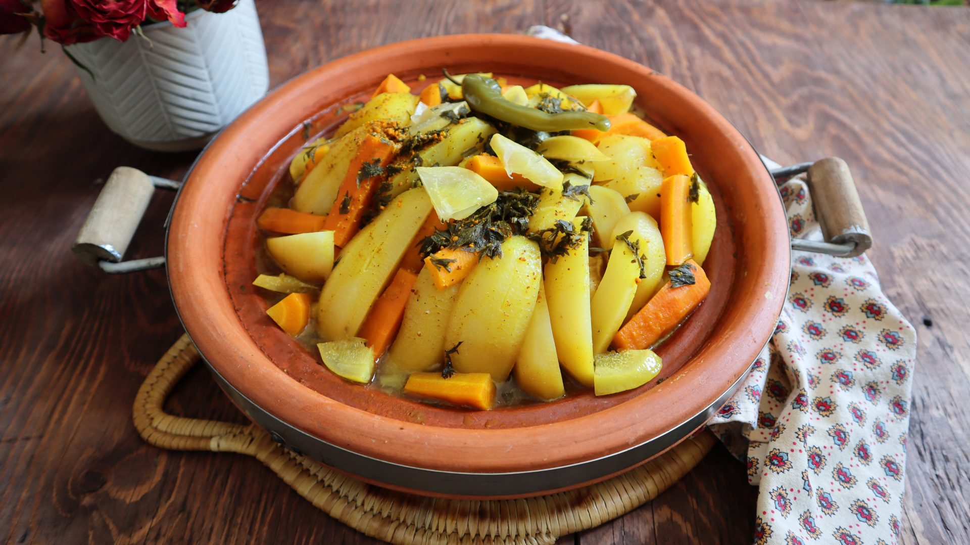 - Tajine de pomme de terre, carottes et poulet / pour le midi